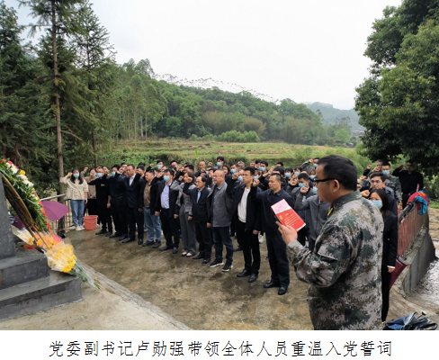 镇党委副书记卢勋强同志在纪念碑前领读入党誓词,在高昂的宣誓中,充分激发了大家的爱国热情,弘扬了忠于人民、无私奉献的精神,引导大家树立正确的世界观、价值观和人生观。