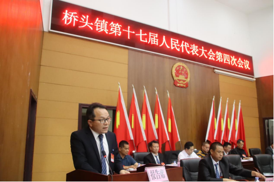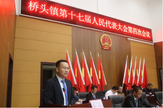 2023年4月4日,桥头镇第十七届人民代表大会第四次会议在桥头镇人民政府胜利召开,大会应到代表68名,实到代表63名,非代表的镇党委、政府领导班子成员及财政所负责人列席参加本次会议。英德市政协副主席陈茂奕、英德市人大常委会选联工委副主任龙竞出席会议并在主席台就座。