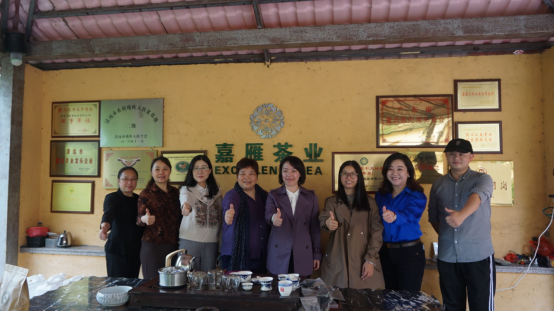钟莹同志走访参观嘉雁茶厂基地,详细了解了红茶产业及用人情况、未来规划和发展需求,听取合作伙伴“小英与阿德”品牌的发展理念,打造“妇字号”品牌文化。“小英与阿德”是由英德本土设计团队以定位助力英德二十四镇文化推广及企业赋能打造的原创品牌ID。“小英与阿德”通过与英德各镇的特色农产品、旅游景点、民俗文化等结合,创作出主题策划及一系列视觉传达的延伸,将英德文化更好地向外展示,让更多人关注到英德的文化特色、特产等,为助力乡村振兴贡献一份力量。品牌自2022年9月初成立,首期开展以英德西牛镇麻竹笋与茶文化结合,创作出“笋野英德茶”为主题的插画,第二期开展以大湾镇民俗活动火麒麟为主题,期间延伸出宣传画面、周边台摆、线上线下红包封面等,初出市场反响良好。“小英与阿德”将策划完成“二十四镇”系列主题,以“英德特产”“乡村振兴”“英德历史”“英茶历史”等围绕英德文化为核心开展主题创作,通过周边物料、影视作品或产品等作为完整的英德名片对外展示。座谈过程中,钟莹充分肯定了嘉雁在通过创新推动高质量发展所作出的不懈努力,并鼓励女企业家要坚定信心,以党建为引领,抢抓发展机遇,创新发展思路,进一步做强做优做大企业。