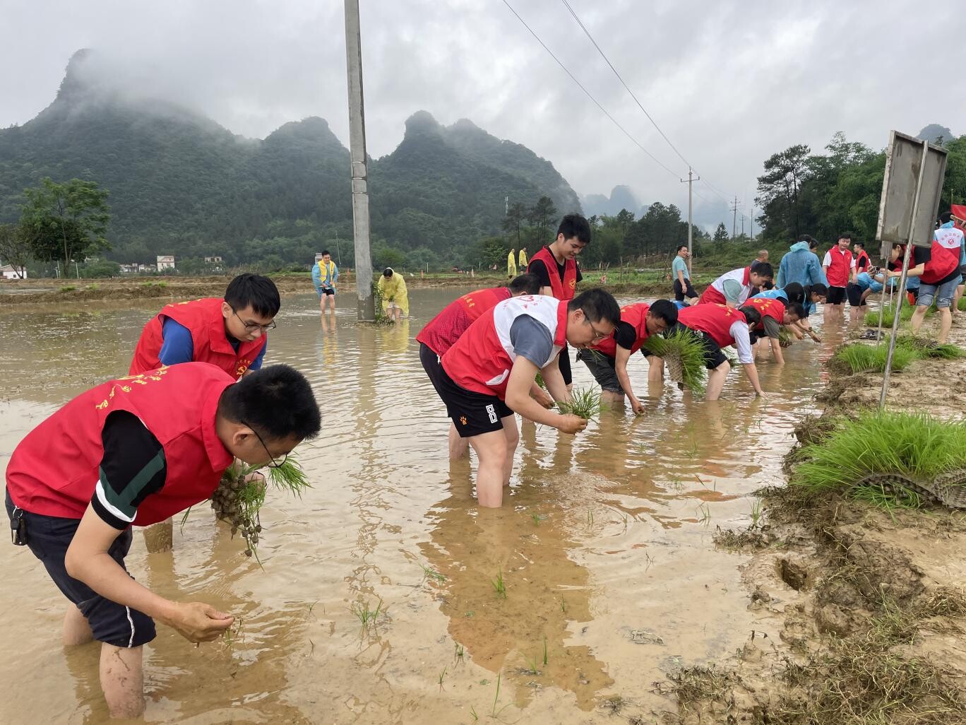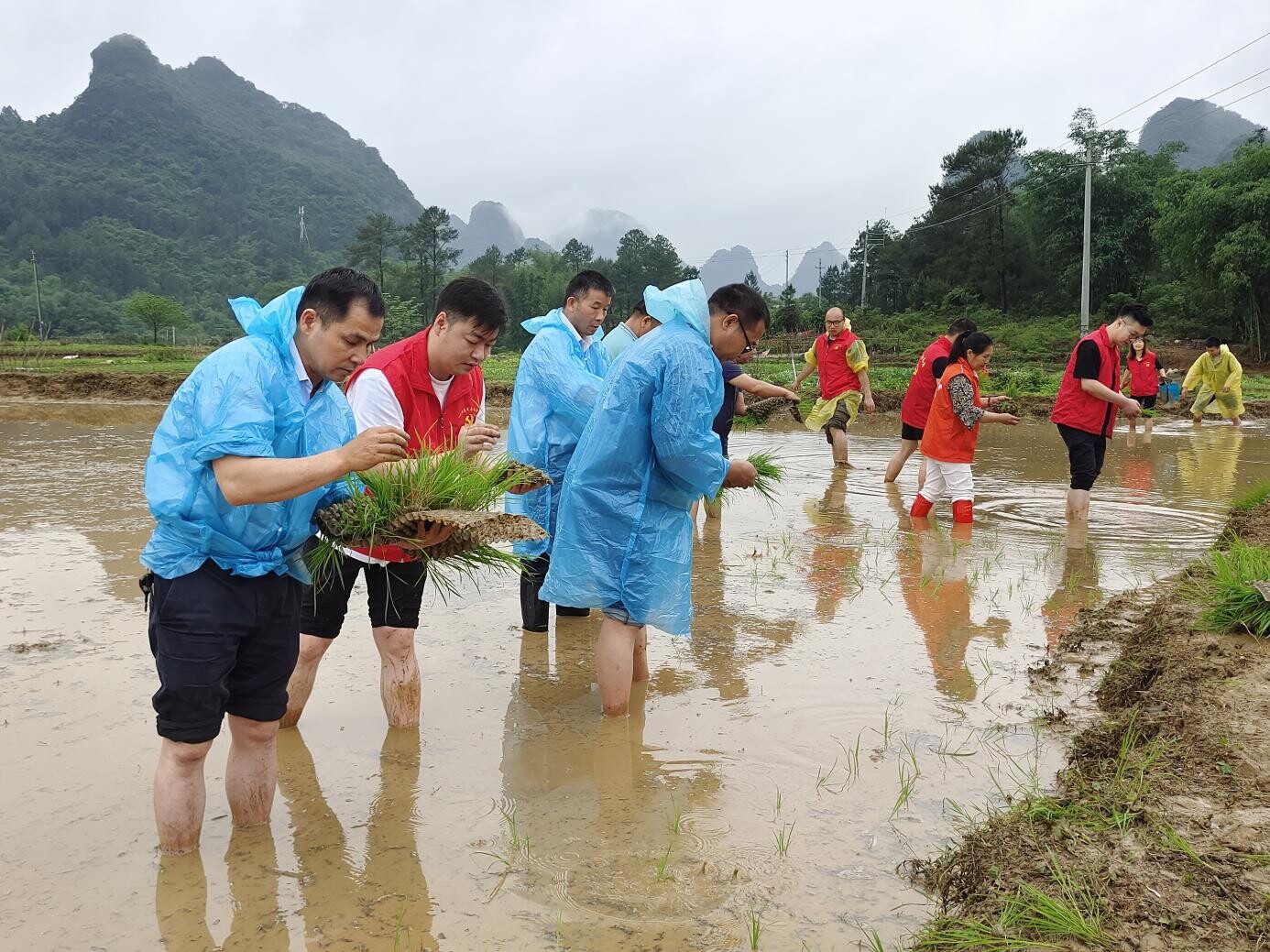 4月23日,黄花镇组织年轻干部职工、乡村振兴工作队、社工、志愿者等50余人到公正村委会棚塘村小组开展“义务插秧助春耕、粮食安全有保障”志愿活动。