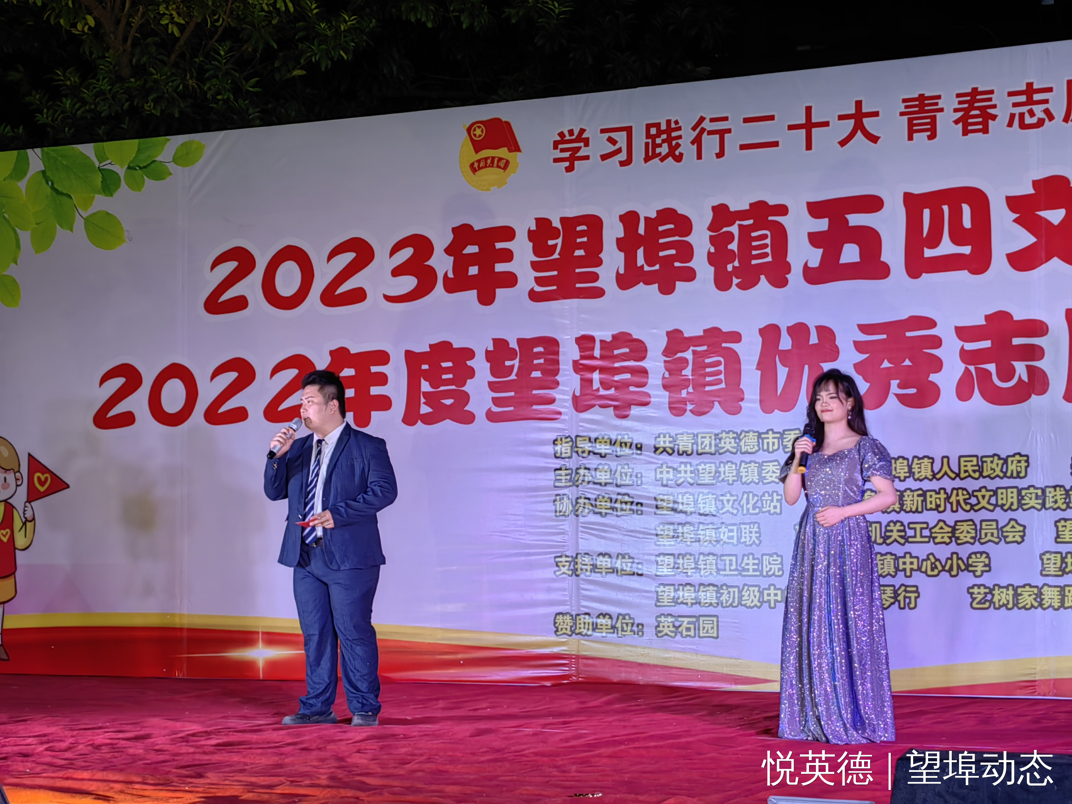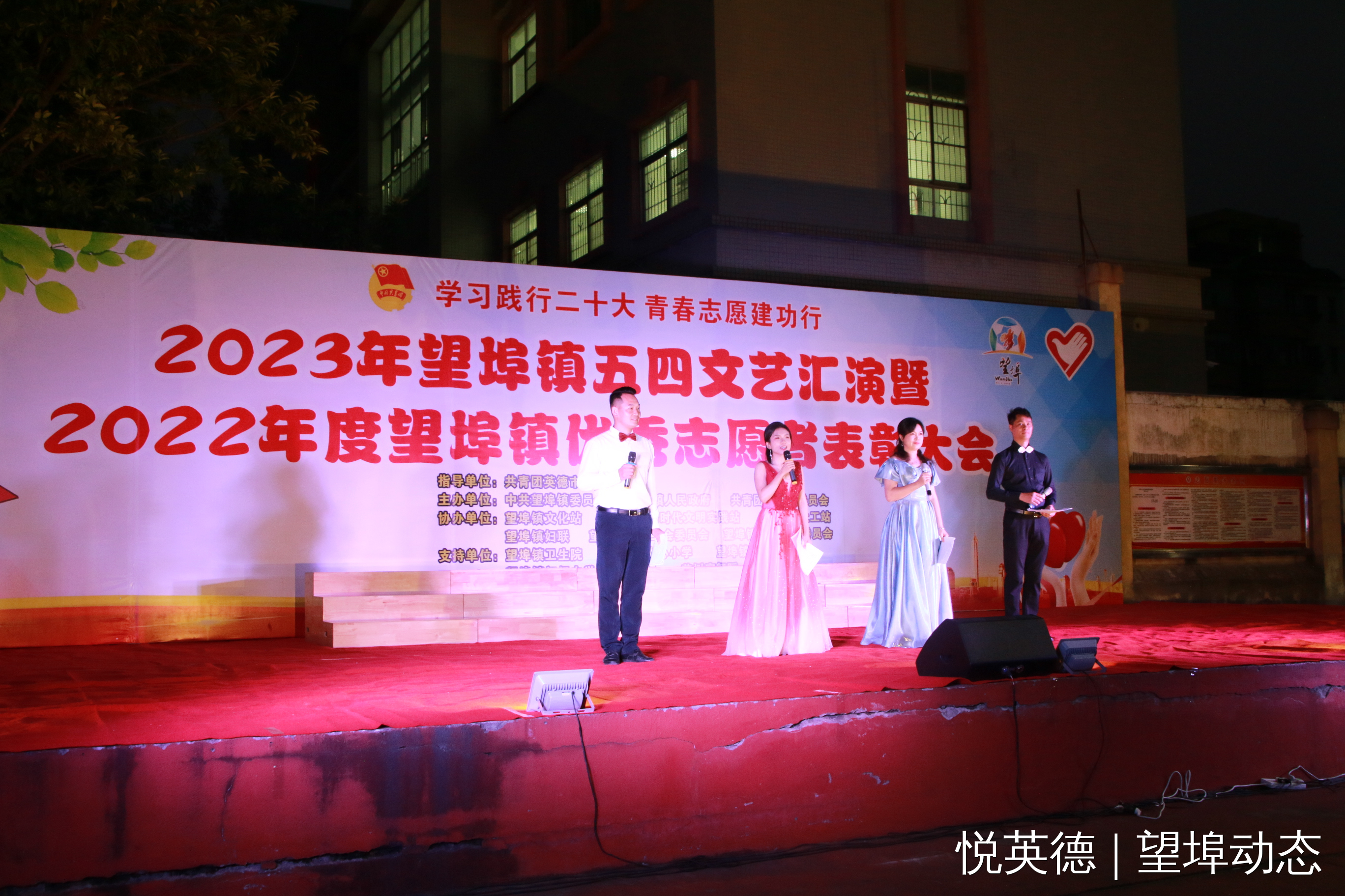 华灯初上,一场洋溢着青春朝气与活力的文艺盛宴精彩上演……4月27日晚上,望埠镇举办了主题为“学习践行党的二十大,青春志愿建功行”的“五四”文艺汇演暨优秀志愿者表彰大会,团市委书记陈定佳、镇领导班子成员、中层干部约35人出席了本次晚会。