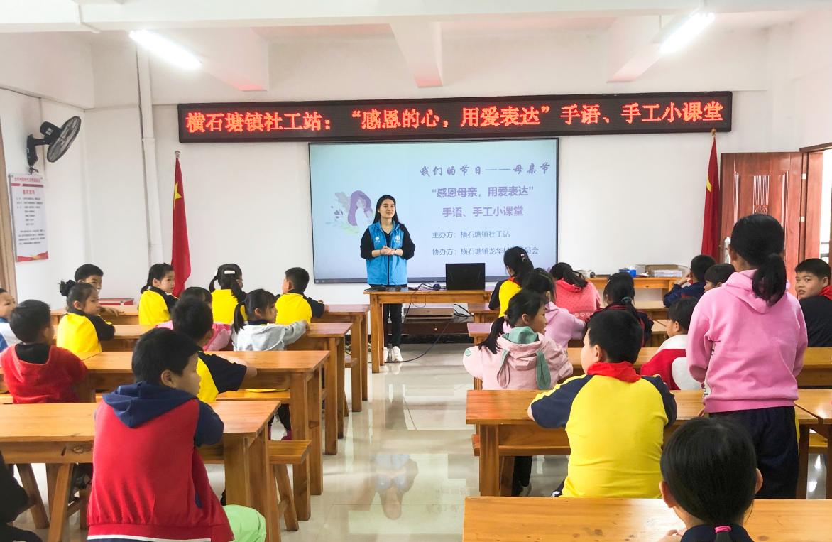 每年五月的第二个星期天是母亲节。5月12日,横石塘镇社工站在母亲节来临之际,开展了一场以“感恩母亲,用爱表达”为主题的手语、手工趣味课堂活动。本次活动共有36名来自龙华村的青少年儿童参加。