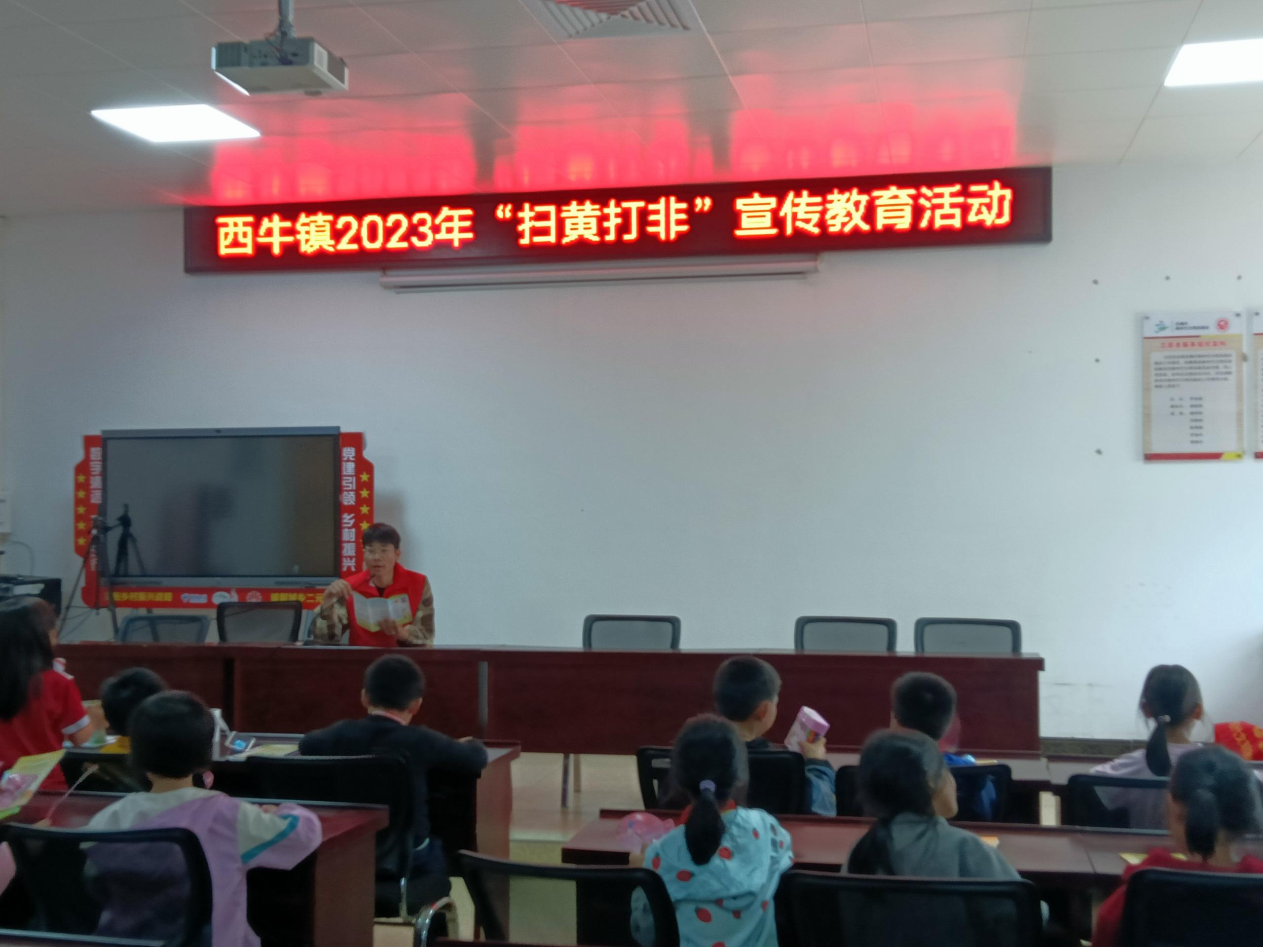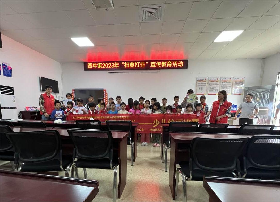 2023年5月12日下午,西牛镇“扫黄打非”办联合镇宣传办、文化站、社工、花塘村委在花塘村委开展“扫黄打非”宣传教育活动。