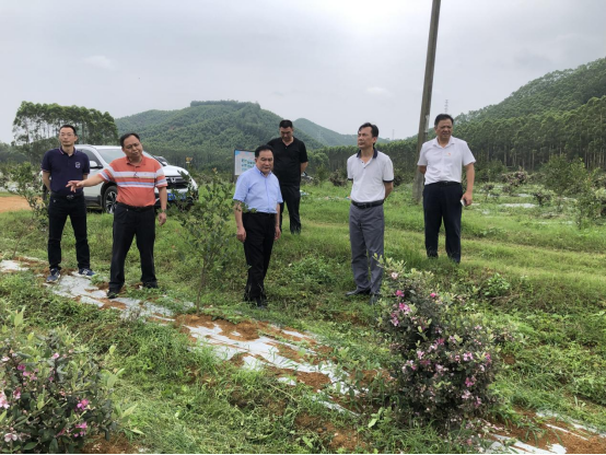 陈茂奕(左三)实地考察“党建引领乡村振兴示范基地”之一的桥头社区油茶基地
