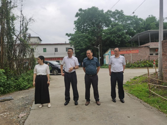 英德市委副书记蓝兴强(左二)到石角村督查迎省考全民清洁活动情况