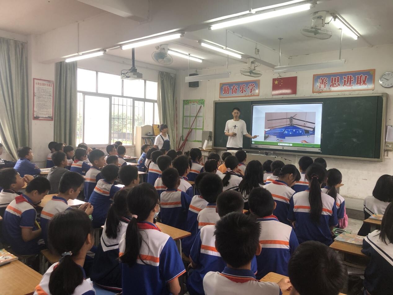 志愿者通过图文并茂的形式向同学们讲解了无人机的基本构造、工作流程和飞行原理等方面的知识。同学们聚精会神聆听、积极参与互动,收获满满。