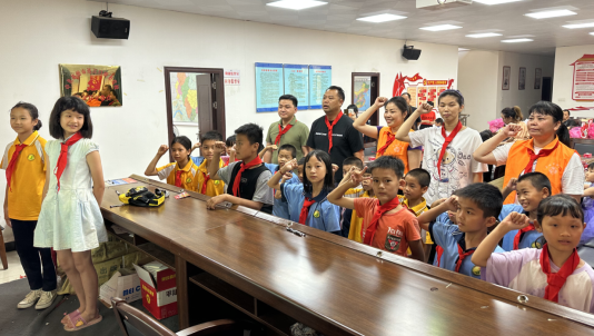 “我热爱中国共产党,热爱祖国,热爱人民,好好学习,好好锻炼,准备着:为共产主义事业贡献力量!”在本环节中,十余名少先队员在队旗下重温入队誓词,并聆听了来自下步村党总支书记黄奎利同志、驻村第一书记蔡炯福同志的谆谆教诲。在发言中,“黄叔叔”与“蔡叔叔”结合自身成长经历,引导和教育小朋友要感恩我们的党和国家,感恩父母和师长,勉励小朋友们从小要养成良好品格、树立远大志向,加强锻炼、努力学习,热爱家乡、传承优秀传统文化,长大以后做对国家、社会有用的人。