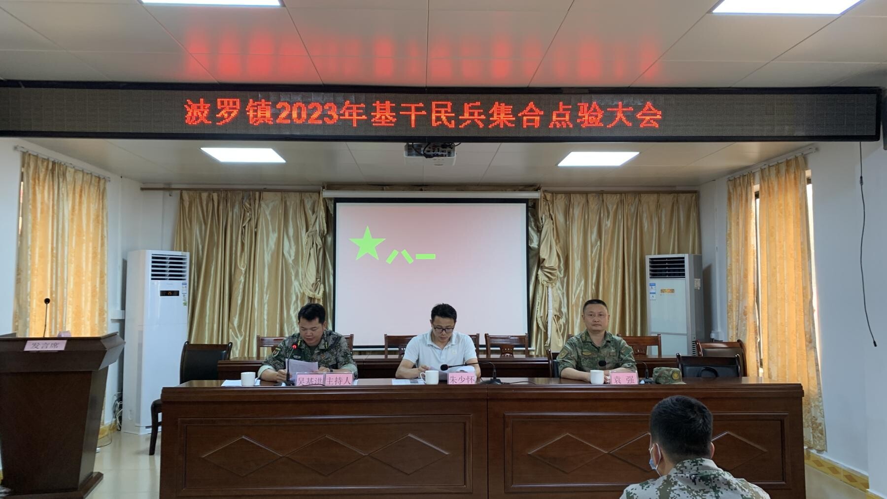 6月7日,波罗镇举行2023年基干民兵集合点验大会。会议由镇党委副书记、武装部部长吴基洪主持。英德市人民武装部副部长袁强、镇党委副书记、镇长朱少怀出席了本次会议。