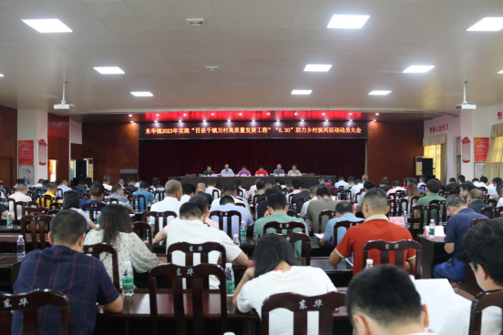 为深入贯彻落实习近平总书记视察广东重要讲话、重要指示精神和省市2023年“6.30”助力乡村振兴活动相关文件要求,6月20日下午,东华镇召开2023年实施“百县千镇万村高质量发展工程”“6.30”助力乡村振兴活动动员会。东华镇党委书记陈斌,东华镇党委副书记、镇长罗日志,清远英德高新区管委会综合服务中心主任巫幼波、东华镇其他领导班子成员,镇各部门负责人,驻镇帮镇扶村工作队成员,各村(社区)党组织书记,镇各爱心企业相关负责人共170余人参加本次会议。