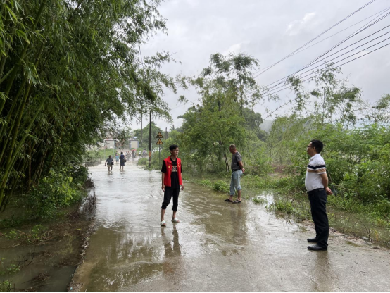 镇党委书记陈斌(左一)到河边街查看水情并指导防汛工作