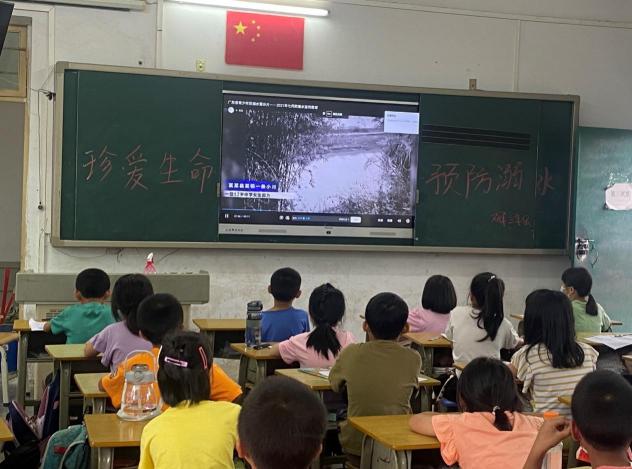 “同学们要切记,绝对不能在家长或教师不在场的情况下私自结伴游泳...自觉远离水渠、水库、河道...”活动中,志愿者播放防溺水安全警示片,向学生们讲述溺水的后果和防溺水的重要性。随后,通过图文并茂、互动问答的方式,向学生们详细讲解了游泳的注意事项、如何预防溺水以及溺水基本自救等常识。