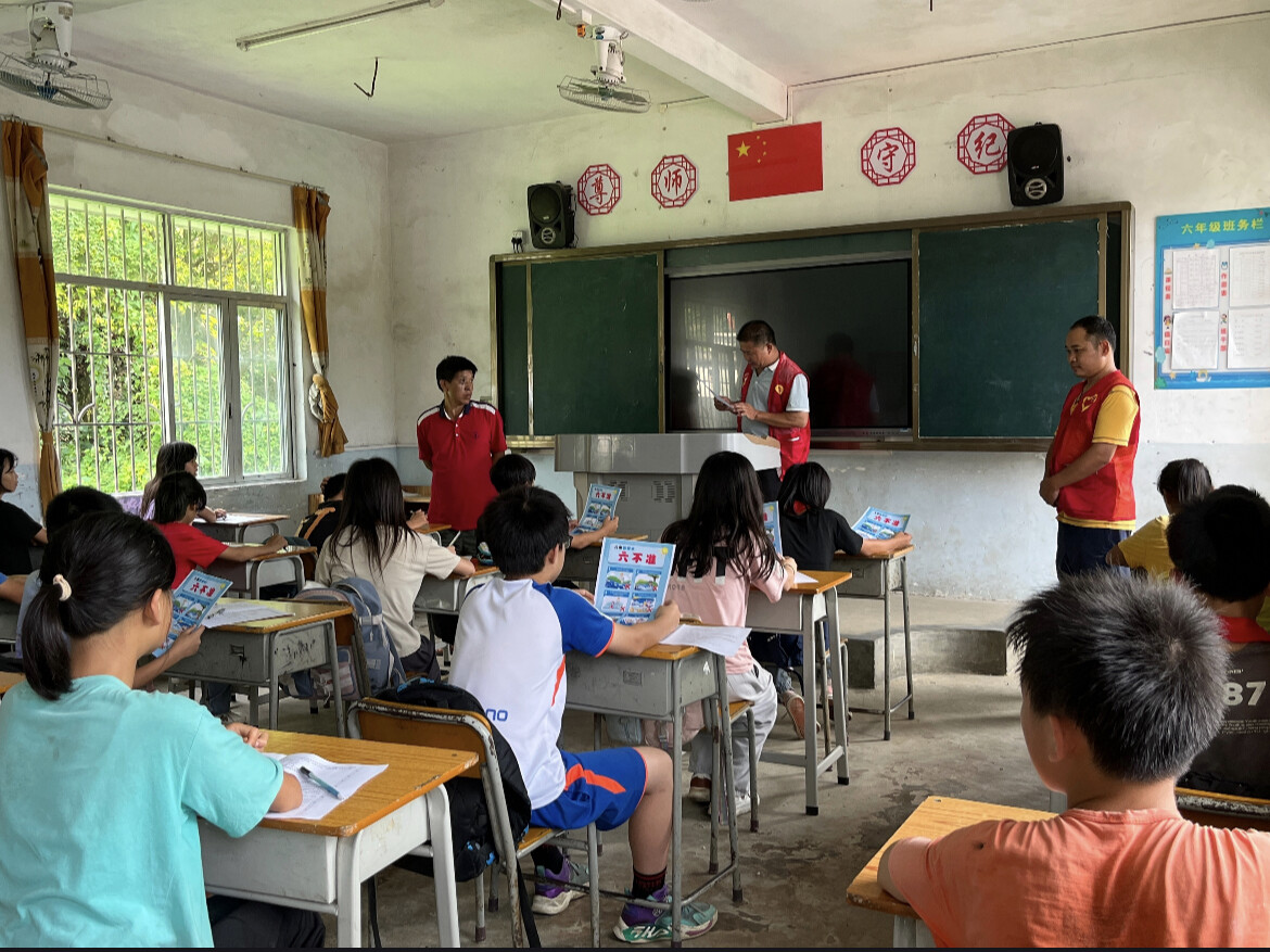 活动中,退役军人志愿者给学生发放宣传单,对防溺水安全教育中的“六不”进行重点讲解:不私自下水游泳,不到不熟悉的地方游泳,不在无家长或老师带队的情况下游泳,不擅自与他人一起游泳,不到无安全设施无救护人员的水域玩耍、游泳,不擅自下水施救。