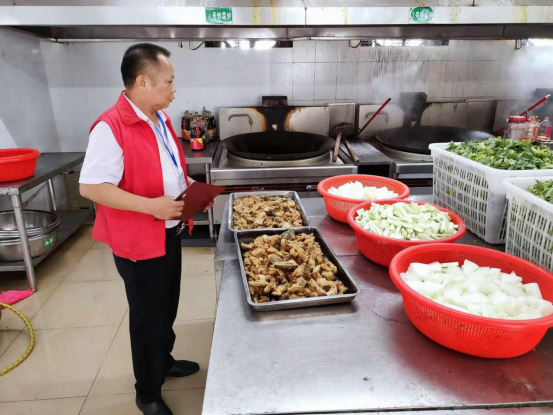 在巡查中,食品安全监督员重点检查了该公司食品经营许可证和食堂工作人员健康证是否齐全,针对是食品原材料的采购渠道、食堂厨具的卫生消毒、厨余垃圾的分类处理等情况进行了详细的质询了解,对检查发现的食堂卫生出现脏乱现象责令限期进行整改。同时对该公司食堂工作人员进行《食品安全法》的宣传普及,加强食品安全教育,提高食品安全意识,增强食品安全责任,切实保障人民群众生命安全和身体健康。