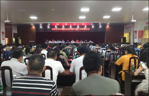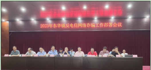 为进一步推进反电信网络诈骗专项整治工作,严格落实打击整治工作机制,强化重点人员摸排管控及劝返工作,有效遏制案件多发高发态势,近日,东华镇组织召开2023年反电信网络诈骗工作部署会议。会议由东华镇党委副书记、镇长罗日志主持,英德市委政法委副书记郑伟、东华镇党委书记陈斌、英德市公安局副局长陈贻栋出席,镇全体在家班子成员、全体干部职工、镇各村(社区)支部书记参加会议。