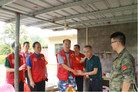 2023年8月28号上午,桥头镇党委书记林树雄、党委委员吴宇雷与英德市退役军人达飞志愿服务队在桥头镇开展走访慰问退役军人志愿服务活动。