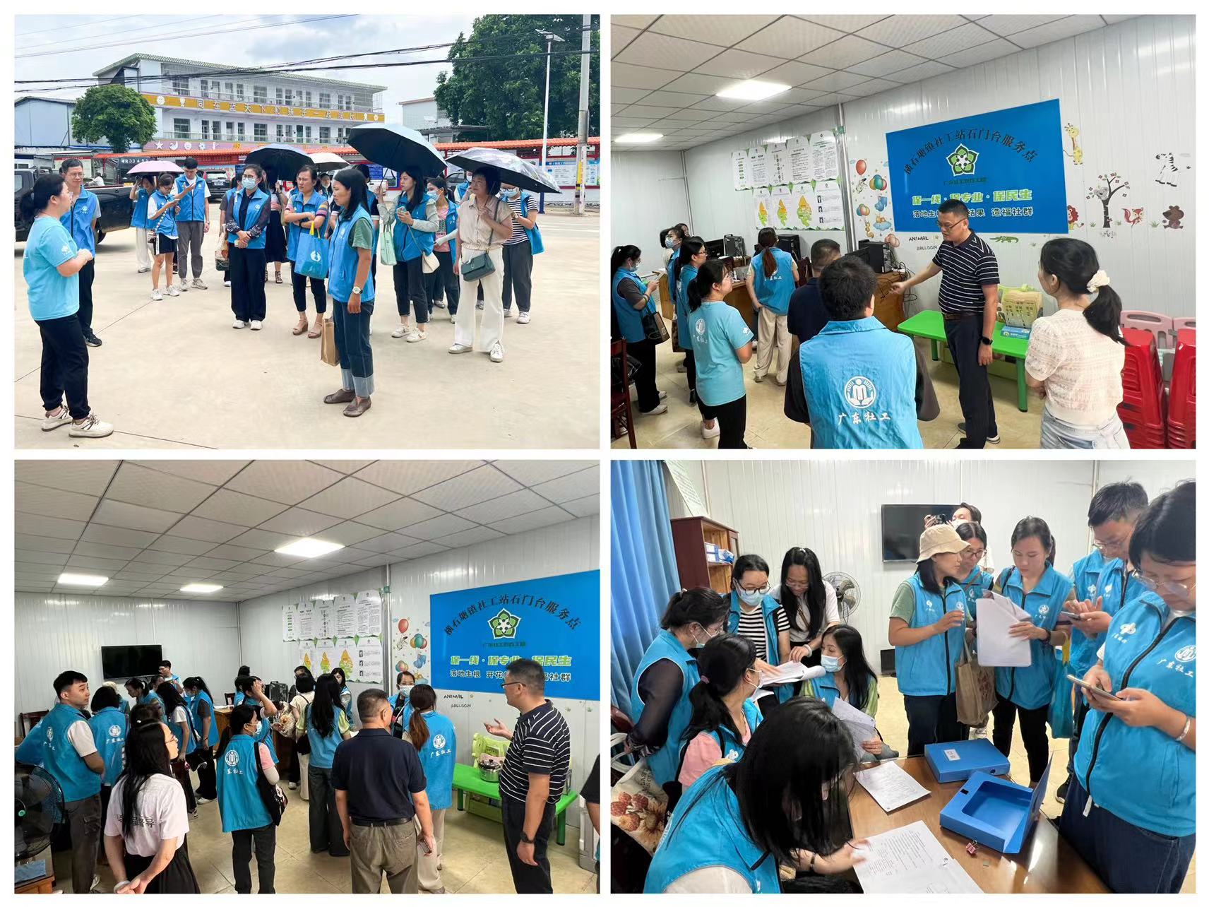 活动的第二站来到石门台社工点,片区联络员陆嘉丽介绍石门台社工点由镇政府统筹,石门台村委会支持建设,服务辖区包括石门台村、新群村和工村居委。由于本地青年大多外出务工,留守老人、留守儿童居多,因此该片区开展了许多面向留守老人、留守儿童的服务工作。联络员向大家展示了各项工作台账,热情分享了各项工作的优秀做法。