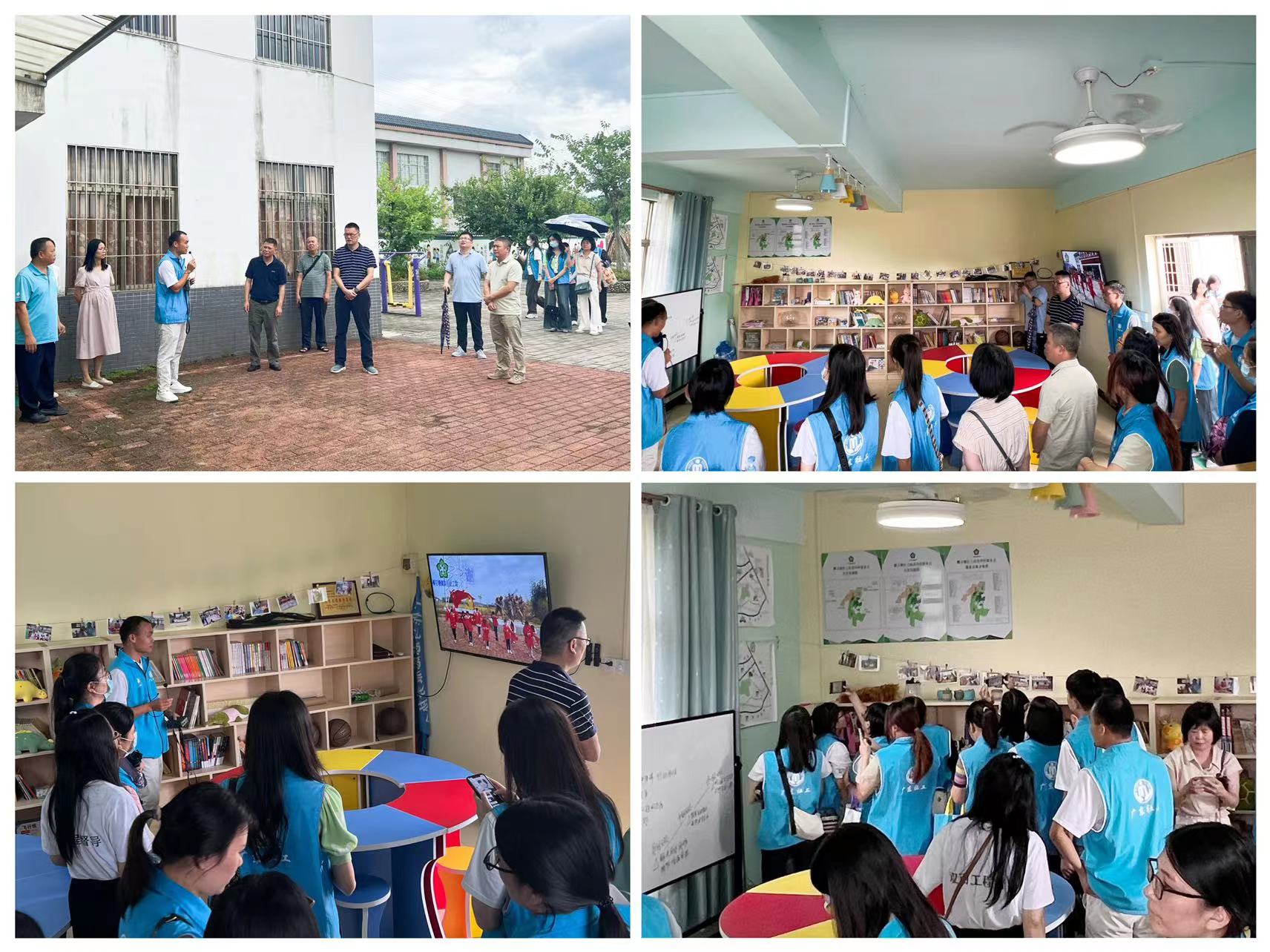 为进一步推动社工站点互学互鉴,切实提高社工站专业素养和服务水平,9月1日上午,清远市清城区凤城、横河、东城街道3个社工站赴横石塘镇开展互访交流活动,清远市清城区社会组织党委专职副书记梁绍洪、英德市民政局副局长胡烈剑出席活动。 交流活动的第一站首先来到龙华村社工点,片区联络员陈志锋介绍龙华村社工点是双百计划第二批开设的站点,坐落龙华村老人公寓,背靠龙华小学,地理优越、环境舒适、设施齐全,方便针对不同群体开展各项服务活动。参观过程中,联络员在服务点播放了由龙华村青少年儿童演绎的快板歌谣视频《龙华少年颂家乡》,体现出龙华村青少年志愿者面貌,展示了服务点丰富的活动形式。