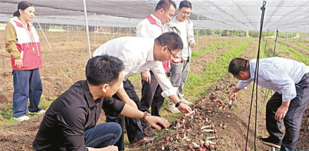 英德市青塘镇青北村的红松茸种植基地里,30亩红松茸正值丰产期,预计今年产值可超100万元;种植大棚旁边,青北村电商基地的工程建设即将完工,设备到位后即可投入运营。