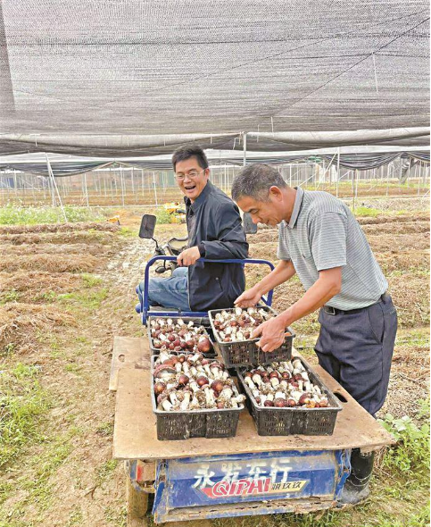 红松茸种植基地以规范土地流转为契机,通过整合帮扶资金、建设大棚、引进新技术新品种,指导村集体领办的合作社带头种植,示范带动种植户跟进,扩大种植面积,紧密结合产、供、销,带动村民增加收入。