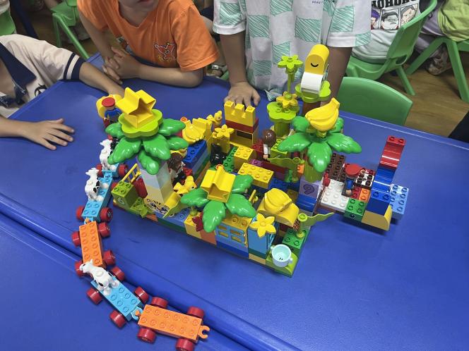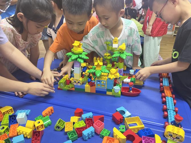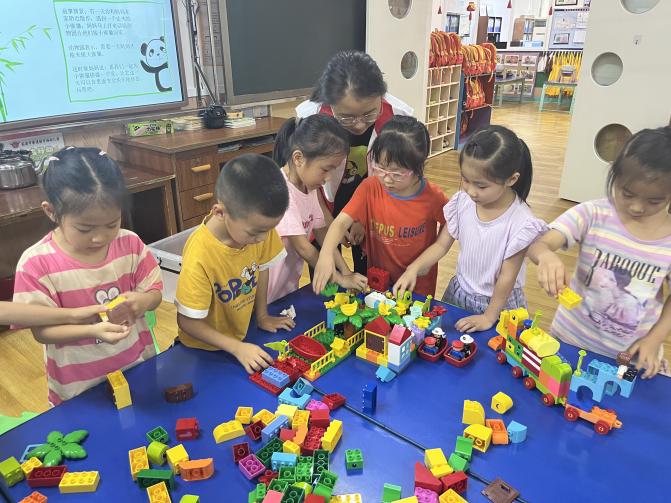 随后,孩子们以小组形式进行创意拼搭,探索着、体会着属于他们的世界,运用奇思妙想合作拼搭出小组作品,展现了他们丰富的想象力和创造力。作品搭建完成后,小组代表向大家介绍了自己小组作品的创意,一个个精心搭建的作品体现了孩子们满满的童真。