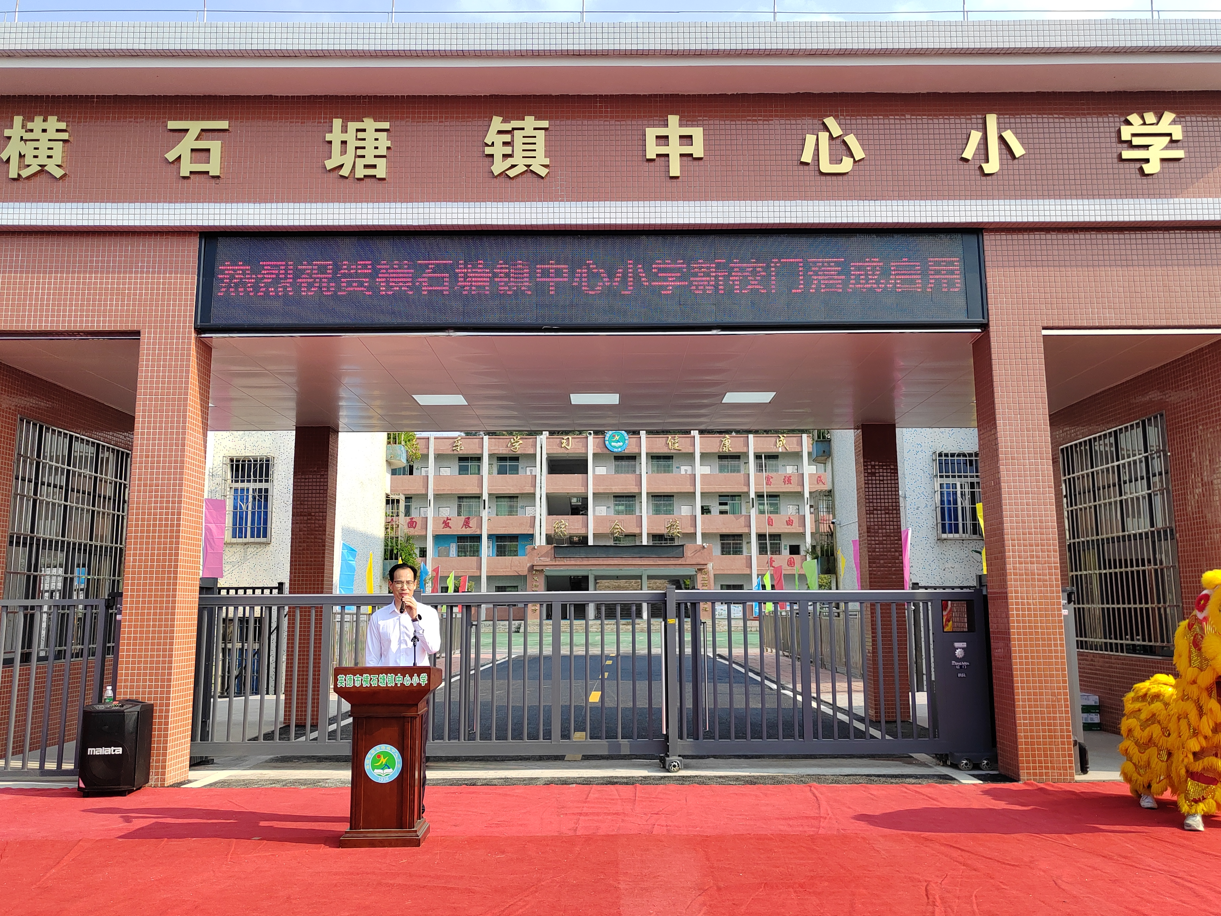 镇党委书记李龙对镇中心小学新校门落成启用表示祝贺。李龙书记指出,新校门是见证小学新发展、新成长、新历程的起点和通道,对外展示了中心小学全新校园形象。希望学校能以此为契机,进一步加强师资队伍建设,努力提升办学质量,为横石塘镇培养更多优秀人才。