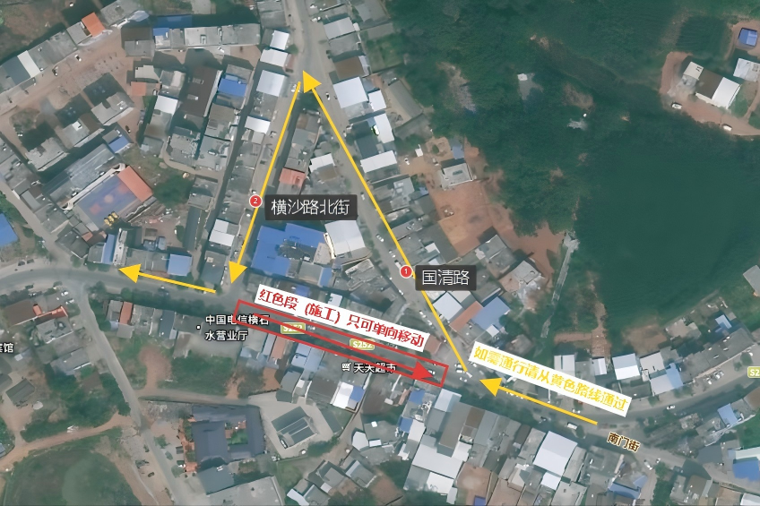 为了进一步优化横石水镇人居环境,因需要进行排水排污管网建设,根据《中华人民共和国道路交通安全法》《广东省道路交通安全条例》的有关规定,决定对栋头南门街路实施限时单向交通管制,现将有关事项通告如下: