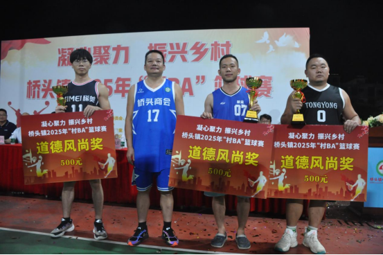 闭幕式上,桥头镇党委书记冯大彰分别为本次比赛冠军桥头商会队、亚军五石村委队颁发奖杯,党委委员余贤照分别为篮球赛季军实益长丰队、第四名潭坑村委队颁奖,副镇长林清为篮球赛第五名亚婆石村委队、第六名英东中学队伍颁奖,副镇长张锦裕为篮球赛第七名中心小学队、第八名桥头镇政府队颁奖,桥头乡贤巫家伟给获得篮球赛道德风尚奖的稀美资源队、南头科技队、新益村委队颁奖。