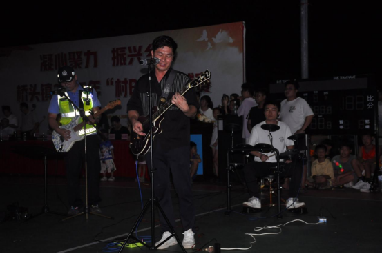 当晚的篮球赛决赛吸引了众多“球迷”到现场观看,气氛十分热烈,开赛前,派出所民、辅警及志愿者们为到场群众指引方向和有序进场,提醒大家注意安全、文明观赛;由中心小学带来精彩的舞蹈《青春风采》拉开帷幕及中心幼儿园、桥头健身队、艺星艺术培训中心、承杨太极队、乐队在比赛中场间隙穿插表演节目,嘹亮的歌声和富有激情的舞蹈调动了现场观众的热情,为篮球健儿们加油助威。决赛现场,四支参赛队伍挥洒汗水,顽强拼搏,进攻、防守、传接配合、运球过人、拼抢篮板、投篮得分……精彩的赛事将现场观众的热情点燃,加油声、呐喊声此起彼伏,场上的比分牵动着赛场内外每个人的心弦,近三个小时的比赛时间内,现场观众热情不减,呐喊加油声不断,营造了全民参与的氛围,提升了广大群众的参与感、获得感、幸福感。