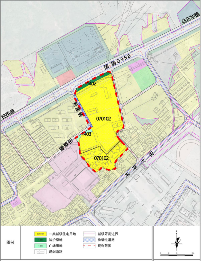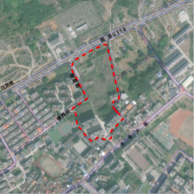 以《现行控规》市政道路与铁路围合区域形成本次《局部调整》规划范围。规划范围位于英德市望埠镇区中北部,北至国道G358,南邻望龙城小区,东至现状道路,西至新星巷,规划范围总用地面积为33022.18平方米。
