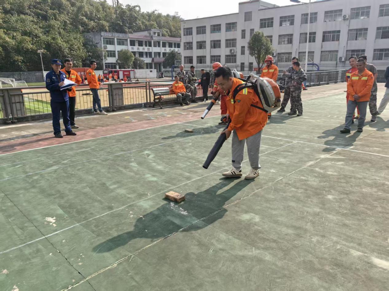 在风力灭火机实操环节,队员们规范完成设备启动、操控等一系列动作,精准操控风口完成指定操作,动作干脆利落。