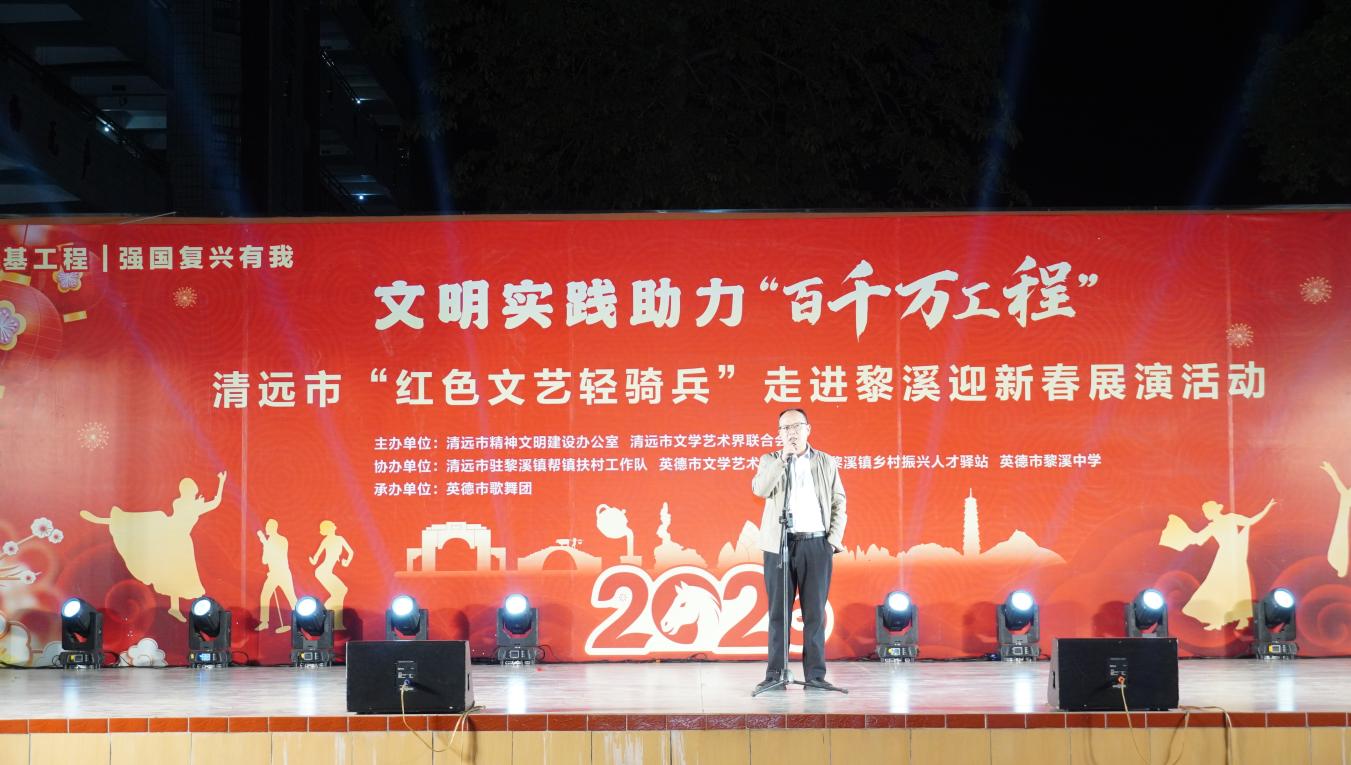 本次展演由清远市精神文明建设办公室、清远市文学艺术界联合会主办,清远市驻黎溪镇帮镇扶村工作队、英德市文学艺术界联合会、黎溪镇文化站、英德市文学艺术界联合会、黎溪镇乡村振兴人才驿站、英德市黎溪中学协办,英德市歌舞团承办,是黎溪镇深化拓展新时代文明实践、以文化振兴力量推动“百千万工程”初见成效的具体举措。