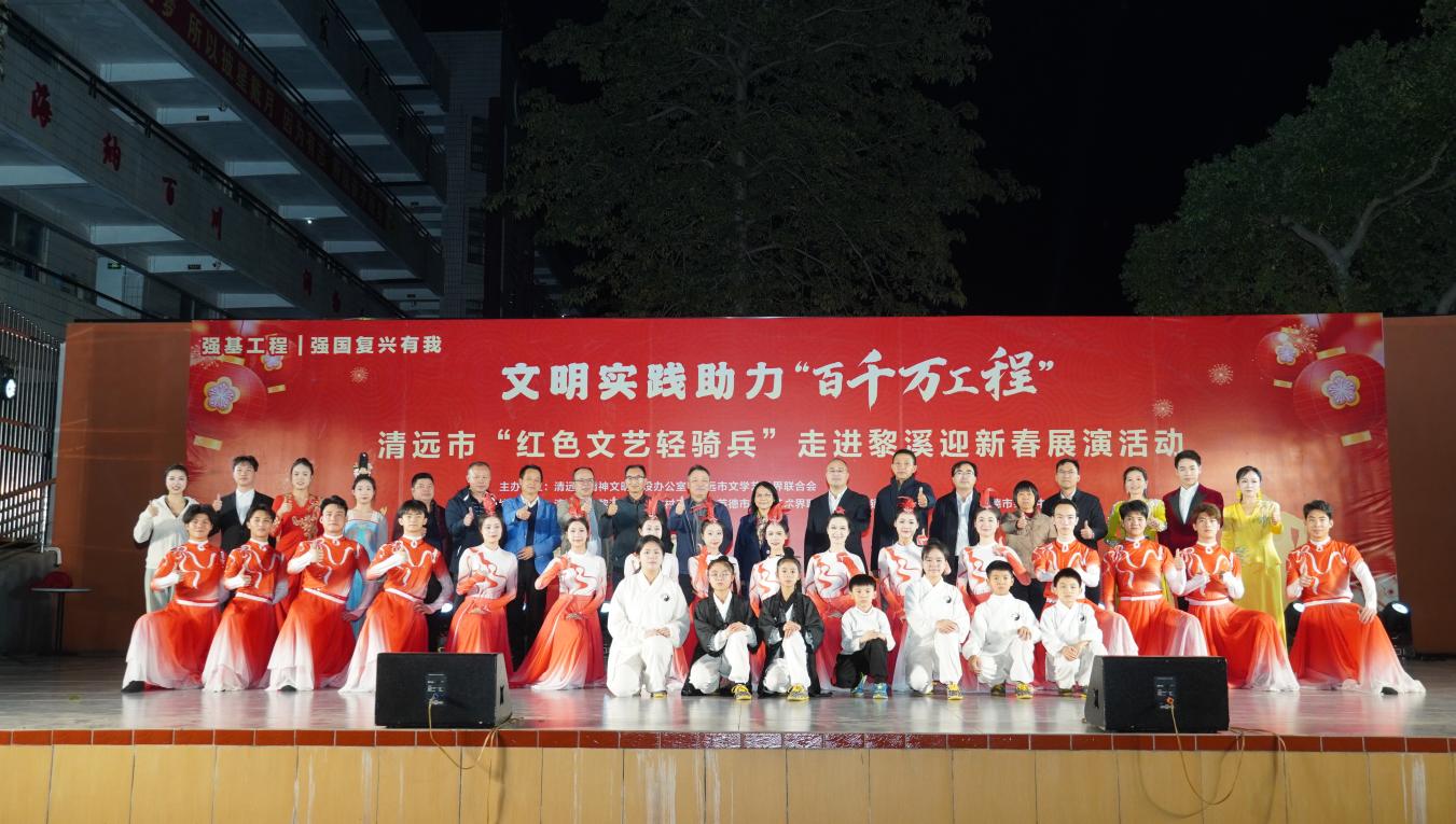 黎溪这片沃土,承载着深厚的历史文脉。在国家乡村全面振兴战略的引领下,在“百千万工程”的东风吹拂下,在马年新春的喜庆祥和氛围中,正勃发着前所未有的生机与活力,书写着乡村产业发展、乡村建设、乡村治理的崭新篇章。今天,清远“红色文艺轻骑兵”怀揣初心使命、满载对黎溪人民的新春祝福如约而至,以歌舞传情、以文艺赋能,用喜庆婉转的旋律、灵动翩跹的舞姿凝聚奋进力量、传递文明新风。
