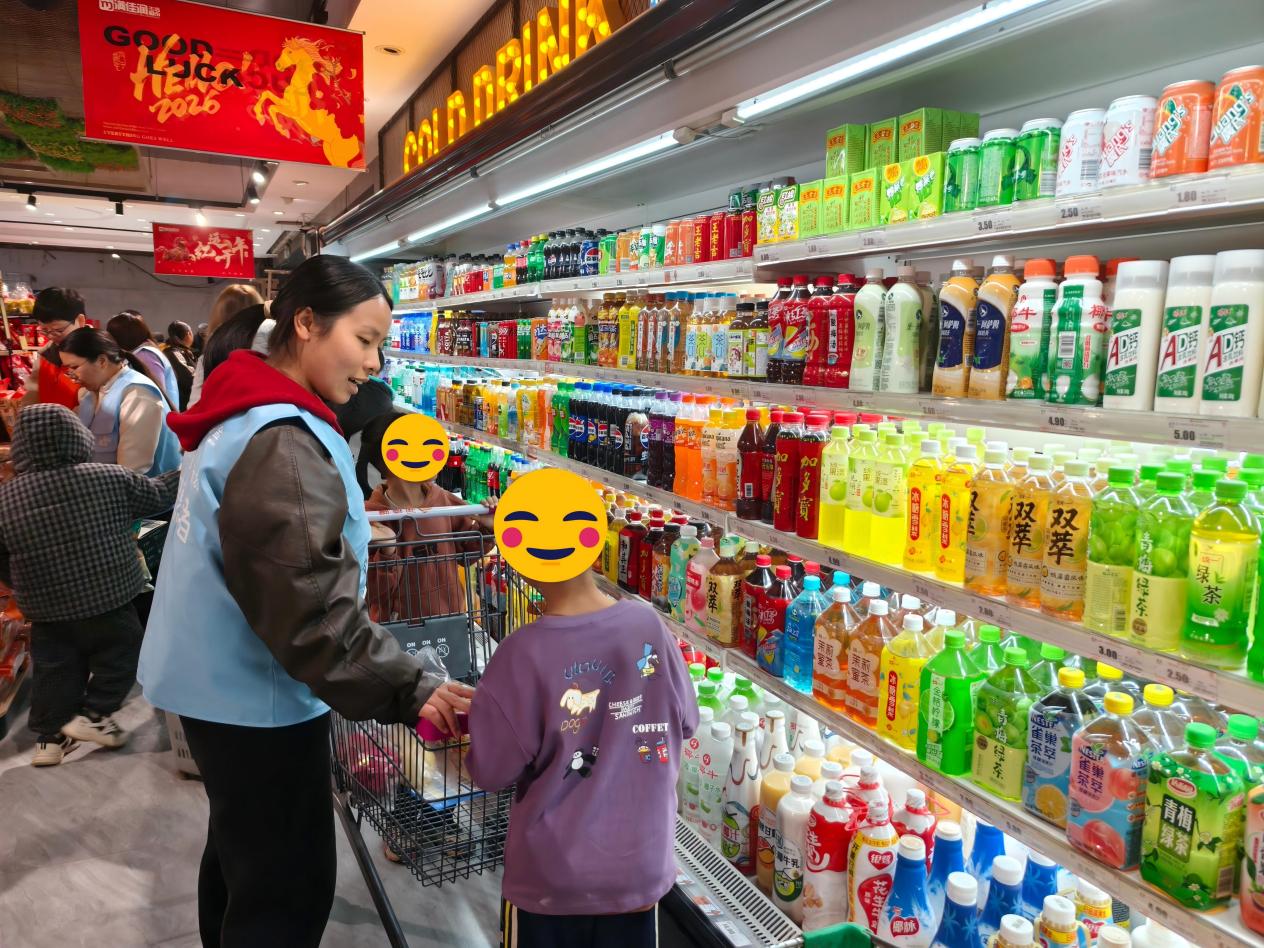 理论讲解结束后,爱心队伍带领孩子们前往超市开展实践活动,将健康理念转化为实际行动。过程中,志愿者们一对一陪伴在孩子身边,耐心询问孩子们的饮食喜好,结合此前普及的营养知识,引导他们自主挑选牛奶、鸡蛋、新鲜蔬果等健康食品,手把手教孩子们查看食品保质期、识别食品安全标识,在实践中加深对健康饮食的理解与记忆。孩子们手持挑选的食品,脸上洋溢着纯真的笑容,每一份精心挑选的食品,都承载着爱心人士的牵挂与关怀,也让孩子们在自主选择中感受到被尊重、被重视。