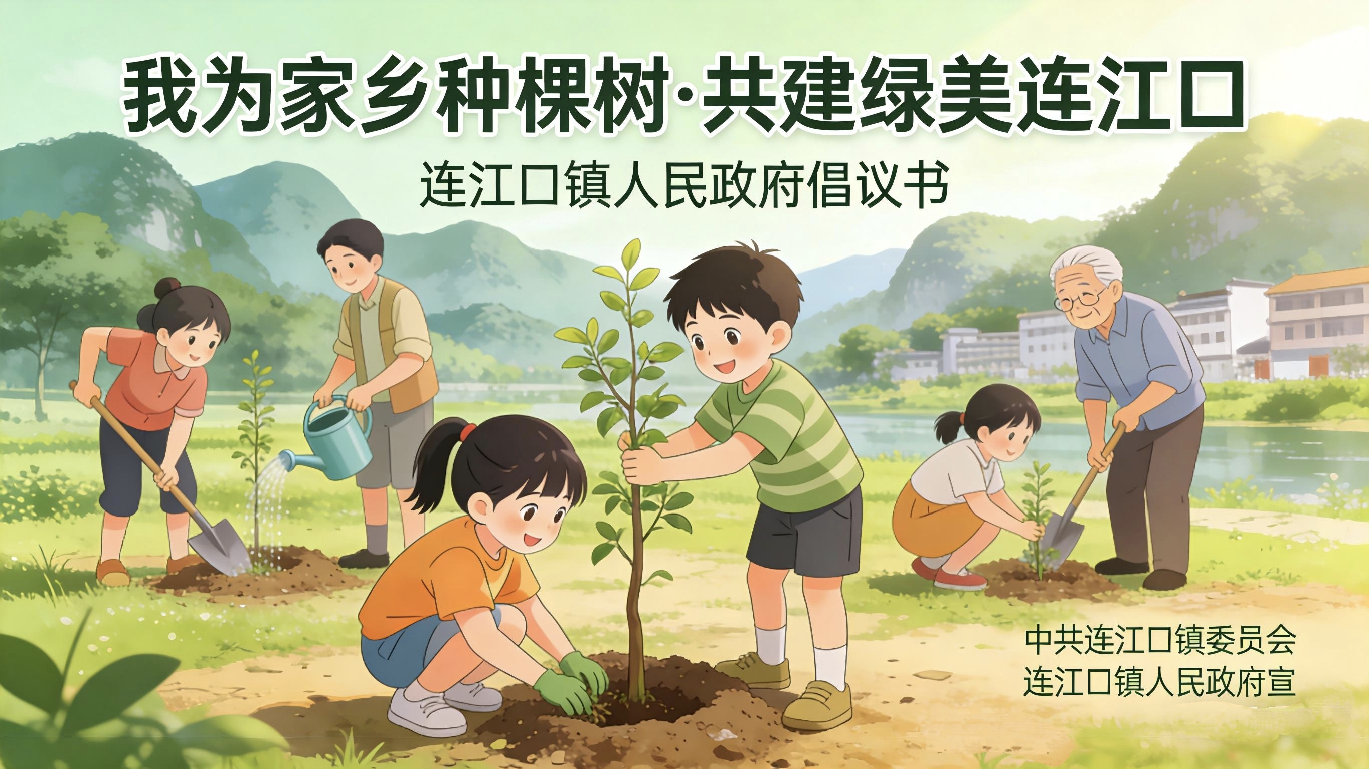 春风送暖,万物复苏,植绿护绿正当时。两江汇流润古镇,青山叠翠育家园,连江口镇凭北江、连江两江交汇之得天独厚,承千年古镇之人文底蕴,既是享誉在外的“全国特色小镇”,更是每一位连江口镇人魂牵梦萦的故土家园。为深入实施“百千万工程”和响应绿美广东生态建设要求,推进绿美连江口建设,让家乡变得更绿、更美,让大家生活更舒心,我们特发出倡议,诚邀每一位热爱家乡、关心生态的朋友,参与“我为家乡种棵树·共建绿美连江口”活动,一起为家乡添绿护绿。