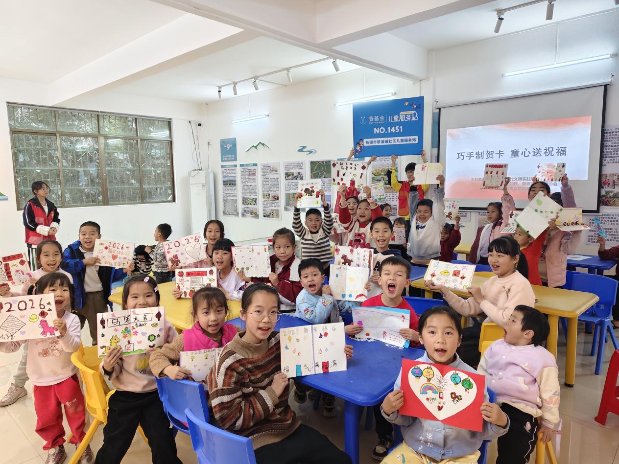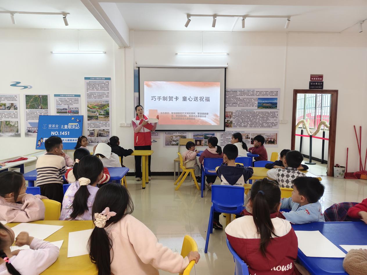 为让乡村儿童感受传统节日的魅力,表达对新年的美好期许,近日,黎溪镇新时代文明实践所、黎溪镇妇联、黎溪镇居委会、英德市志愿者协会联合黎溪镇壹基金儿童服务站开展了“巧手制贺卡 童心送祝福”新年贺卡制作主题活动。孩子们在志愿者的陪伴下,用巧手绘制专属的新年祝福。