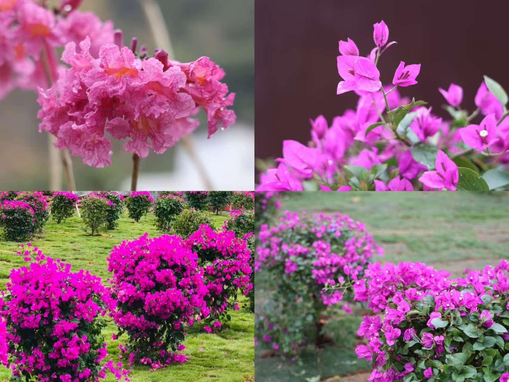 万紫千红——春日的三角梅、紫花风铃木正陆续绽放,点缀出湿地的缤纷色彩。