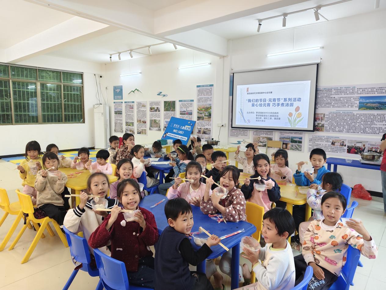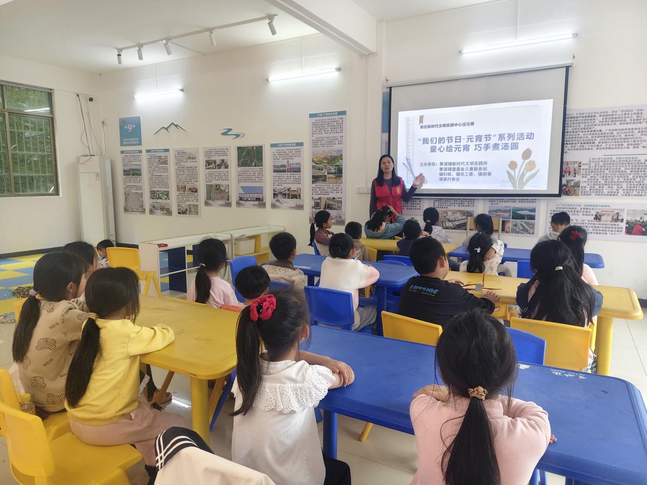为弘扬中华优秀传统文化,丰富未成年人文化生活,2026年3月1日,黎溪镇新时代文明实践所联合壹基金儿童服务站、镇妇联、镇关工委、镇团委及湖溪村委会,共同举办“童心绘元宵 巧手煮汤圆”元宵节主题文明实践活动。30余名儿童和家长在志愿者陪伴下,通过听故事、绘彩画、煮汤圆等环节,感受传统节日魅力,传递文明新风。